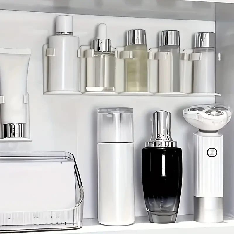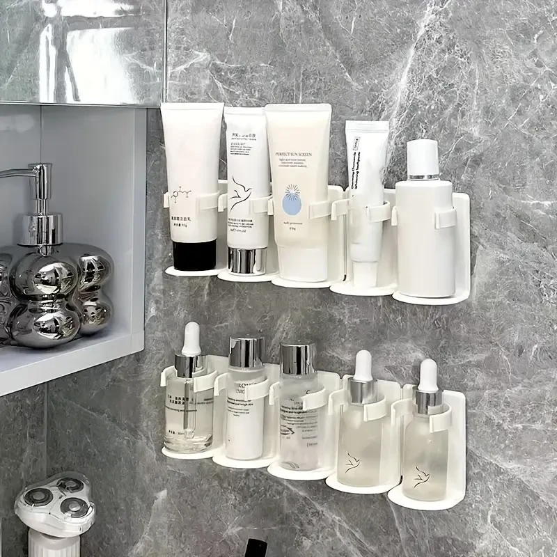 - Product Name: 5 Grid Plastic Cosmetic Organiser No Punching Cuttable Storage Holder For Home Washroom