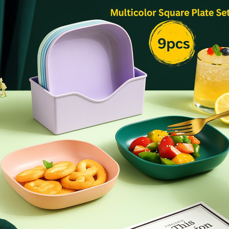 Multicolor 9-Piece Square Plate Set